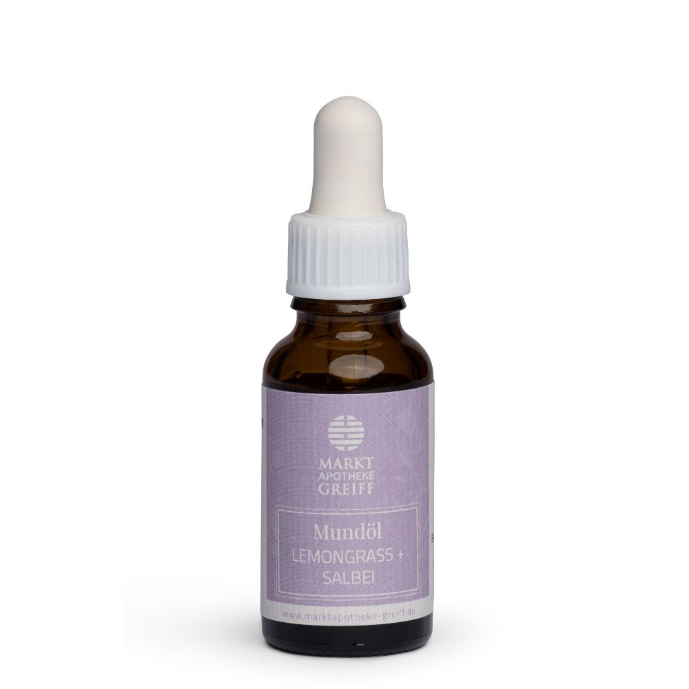 Das Mundöl enthält die reinen ätherischen Öle Lemongrass und Salbei in Bio-Schwarzkümmelöl.